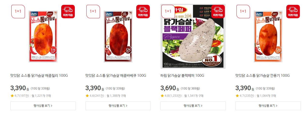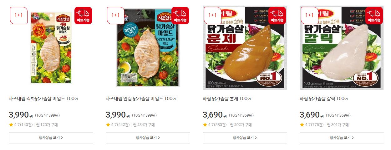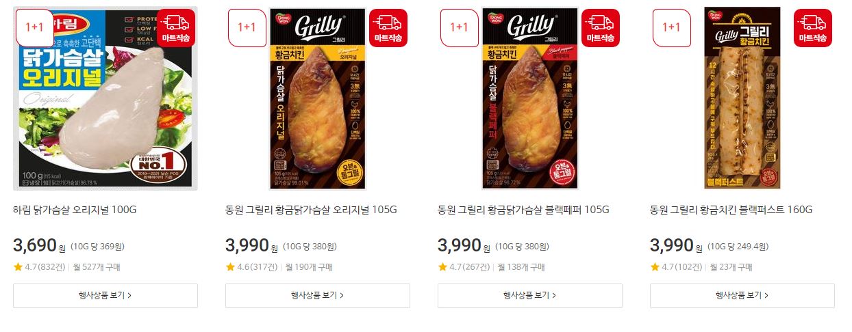 할인 품목 : 구구콘, 치킨너겟, 닭가슴살 훈제 등
