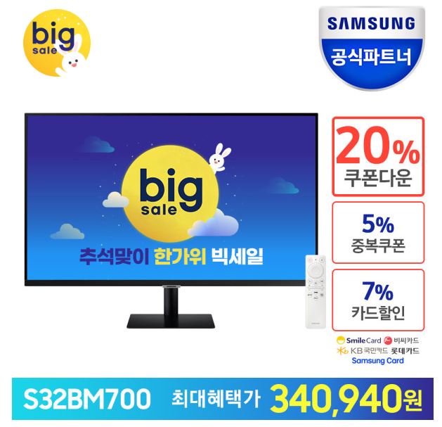 스마트모니터 M7 S32BM700 80cm UHD 4K OTT C-Type 최대할인가 340940원 [링크]