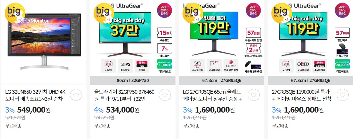 LG전자 다양한 제품을 할인 판매하네요.