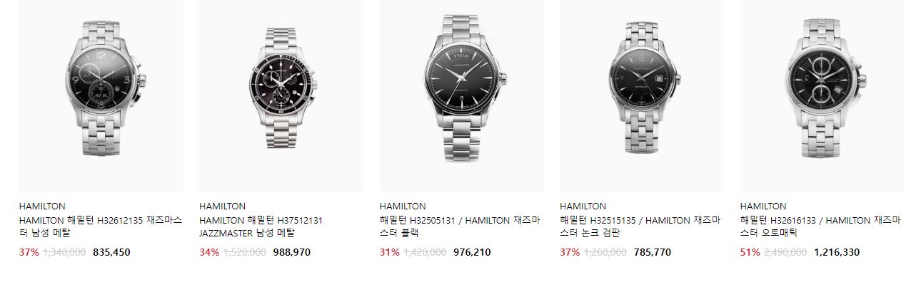 할인 브랜드 : 티쏘, 해밀턴, 구찌 등