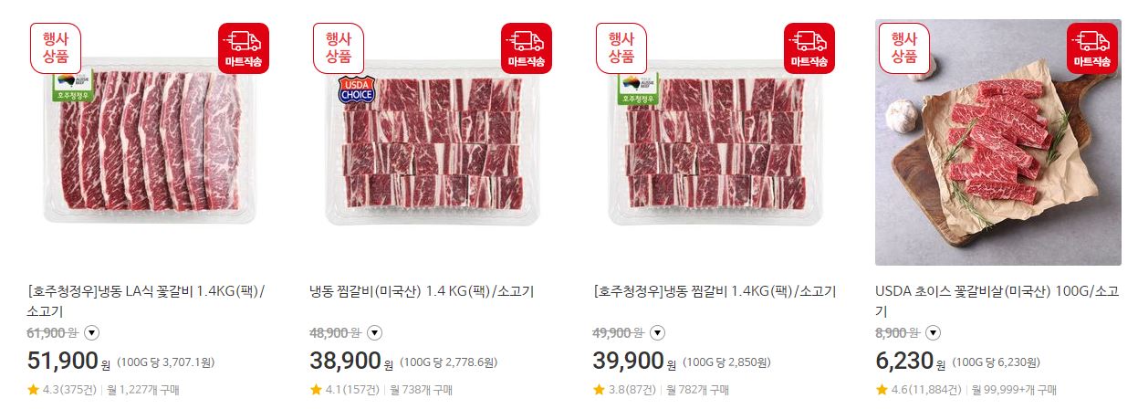 할인 품목 : 찜갈비, 꽃갈비, 삼겹살 등