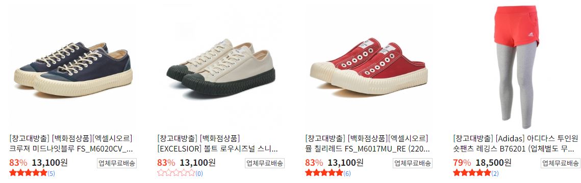 할인 품목 : 식품, 운동화 등