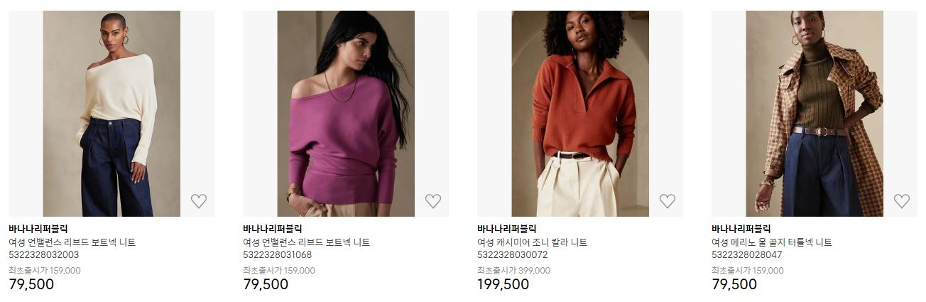 바나나리퍼블릭 다양한 제품을 할인 판매하네요.