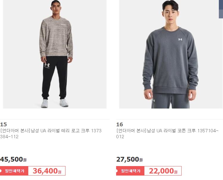 언더아머 다양한 제품을 할인 판매하네요.