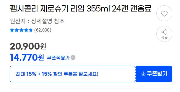 롯데칠성 최대 20% 쿠폰 + 최대 17% 중복쿠폰 정보 [링크]
