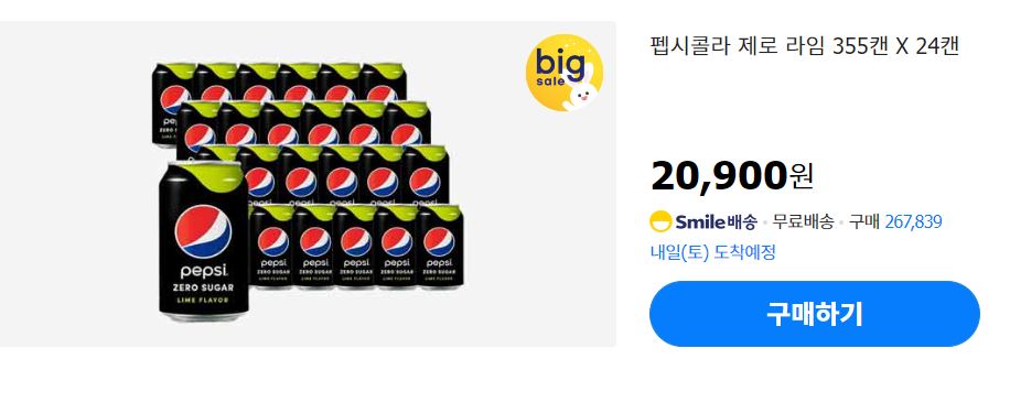 할인 품목 : 펩시콜라, 칠성사이다, 칸타타 등