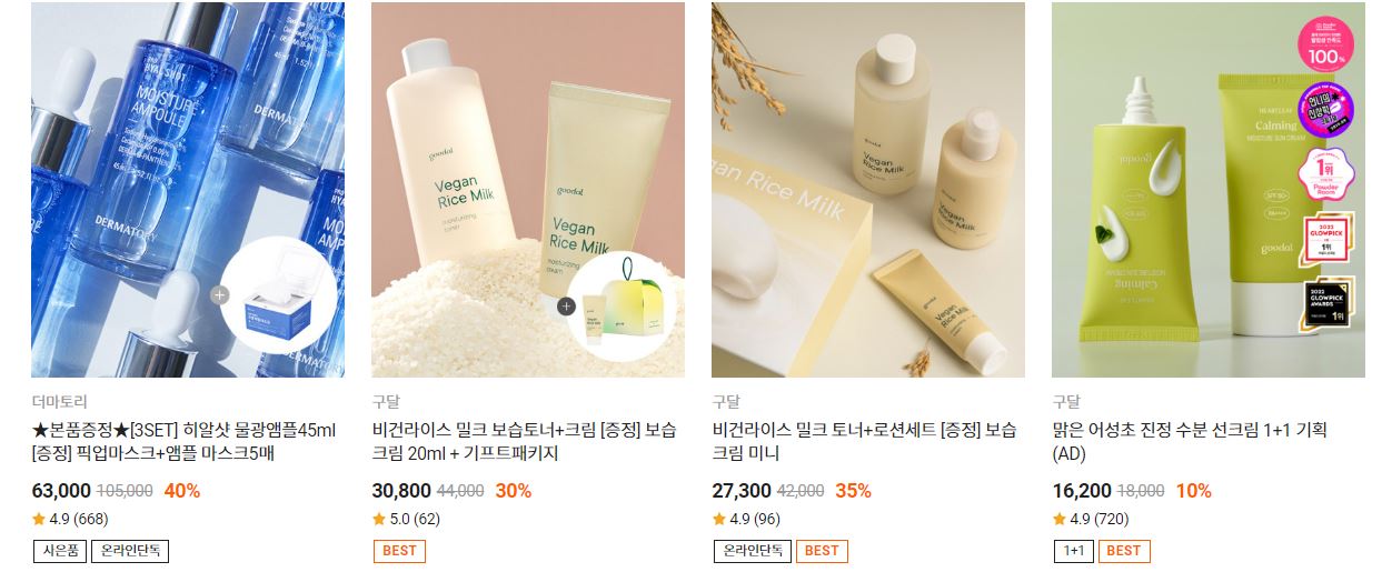 할인 품목 : 수분크림, 마스크 등