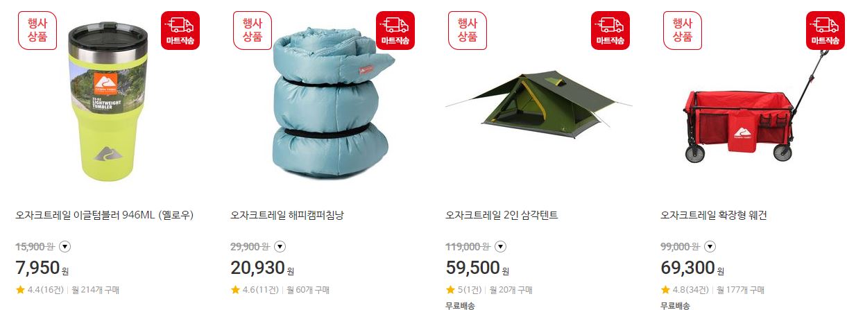할인 품목 : 텀블러, 텐트, 의자 등