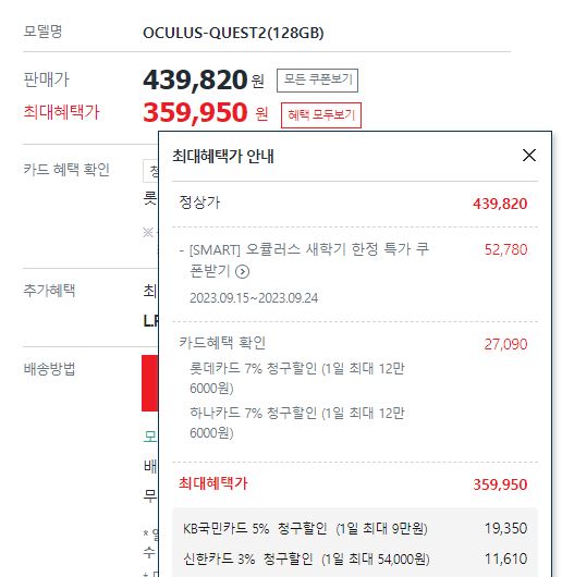 메타 퀘스트2 VR헤드셋 128GB 정보 [링크]