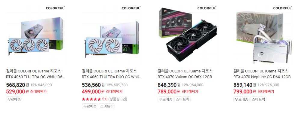 컬러풀 그래픽카드 다양한 제품을 할인 판매하네요.