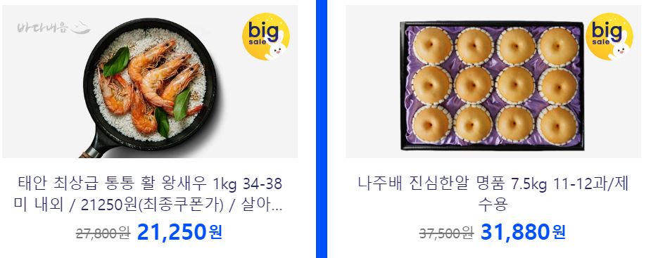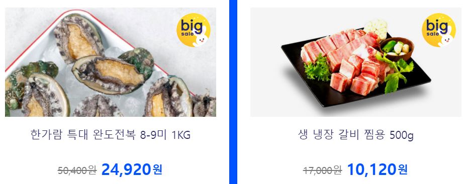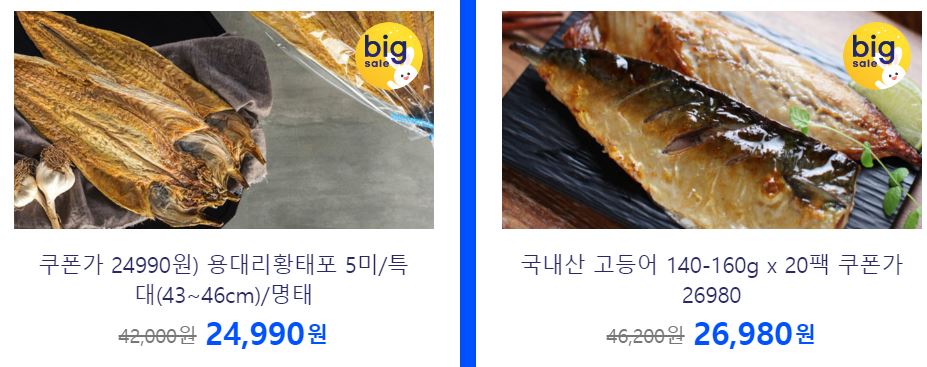 할인 품목 : 수산물, 과일 등