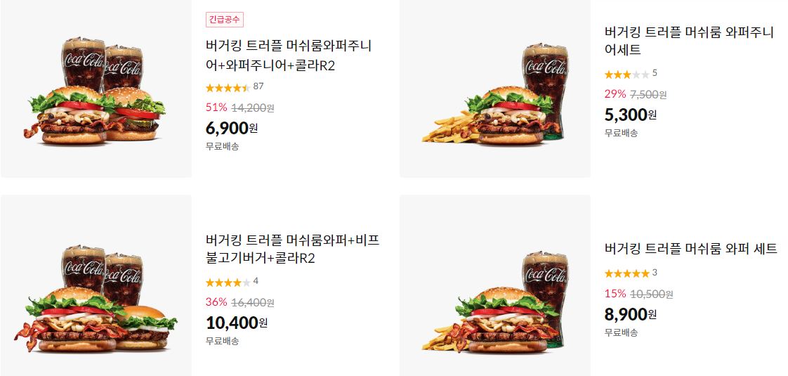 할인 메뉴 : 트러플 머쉬룸 와퍼주니어 세트, 트러플 치즈프라이 등