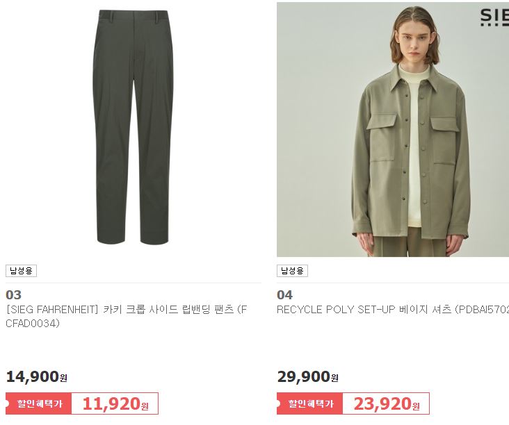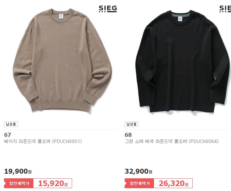 할인 품목 : 맨투맨, 셔츠, 점퍼 등