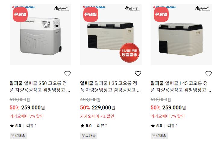 알피쿨 다양한 제품을 할인 판매하네요.