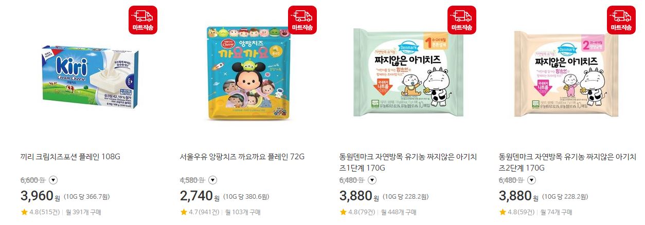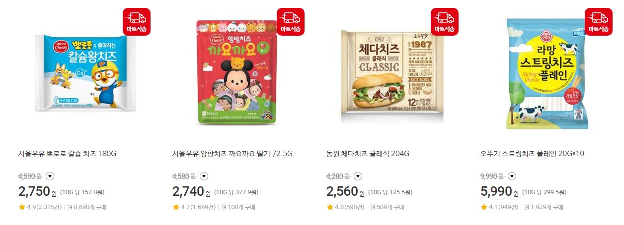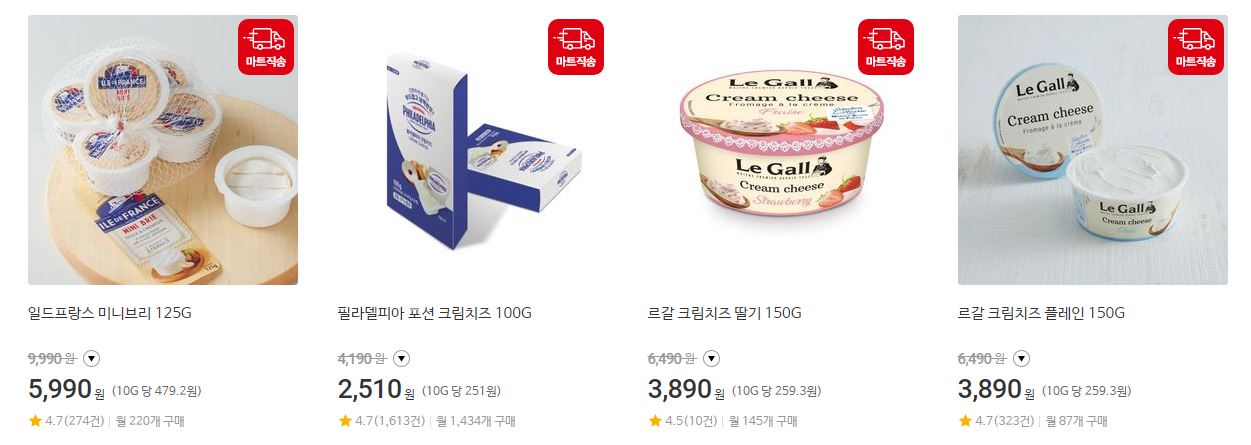 할인 품목 : 크림치즈, 체다치즈 등