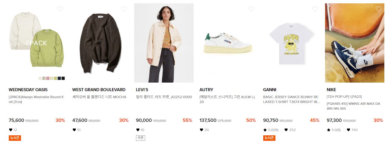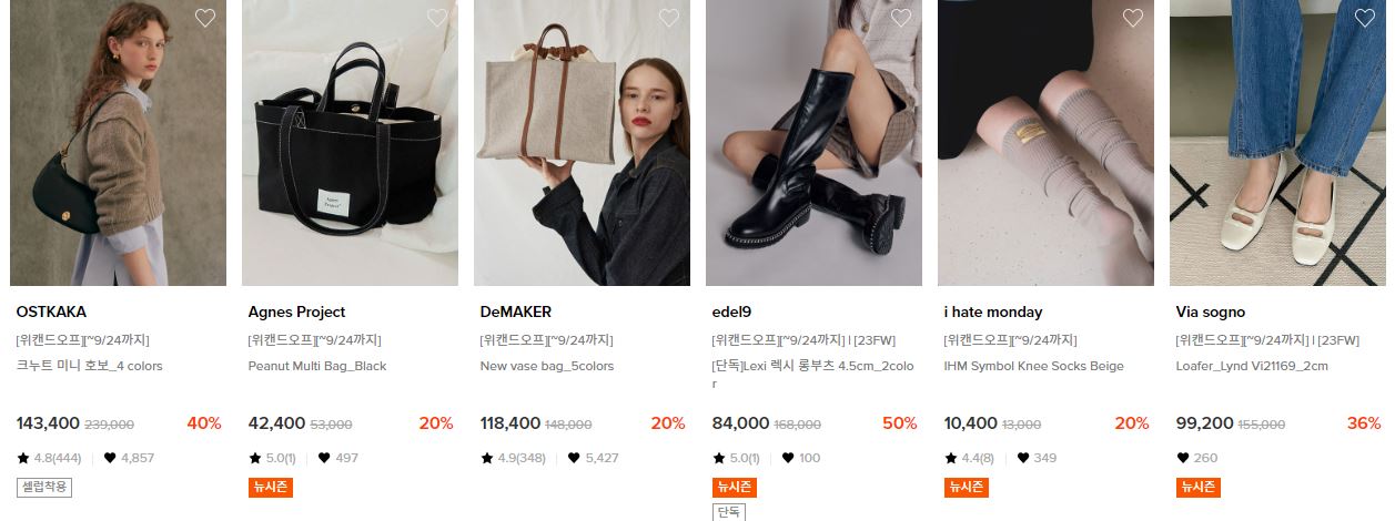 할인 품목 : 의류, 가방, 신발 등