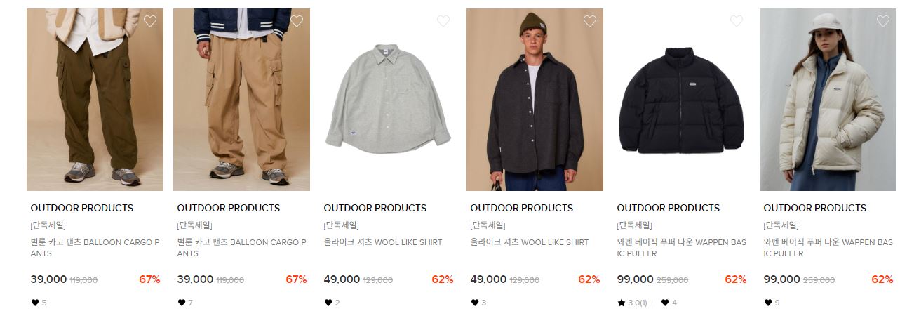 아웃도어프로덕츠 다양한 제품을 할인 판매하네요.