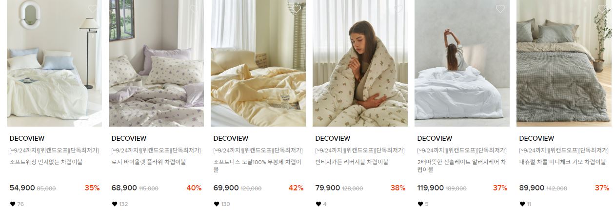 할인 품목 : 잠옷, 이불 등