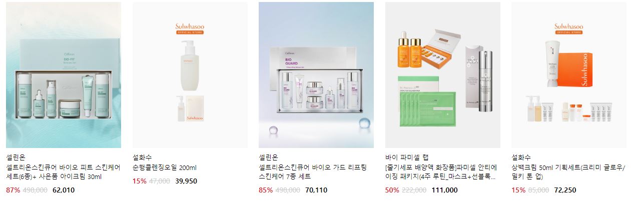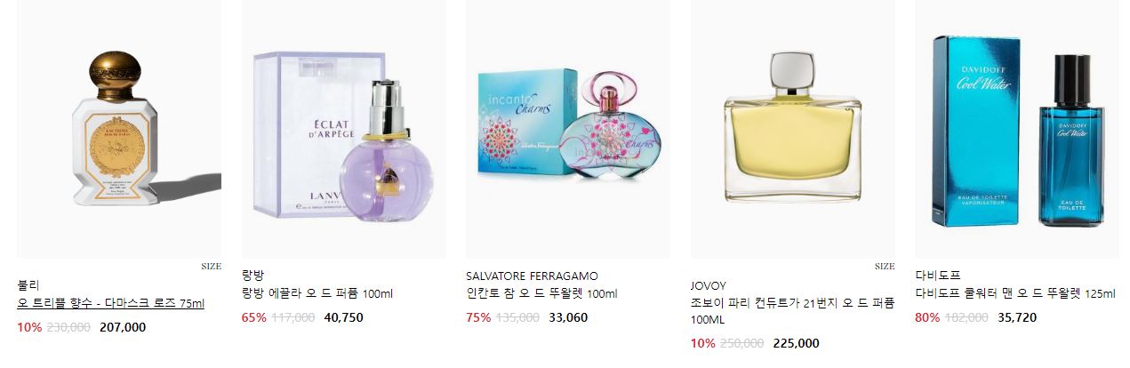 할인 품목 : 향수, 로션, 마스크팩 등