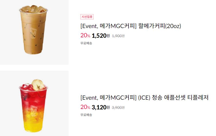 할인 브랜드 : 메가mgc커피, 제주항공 등