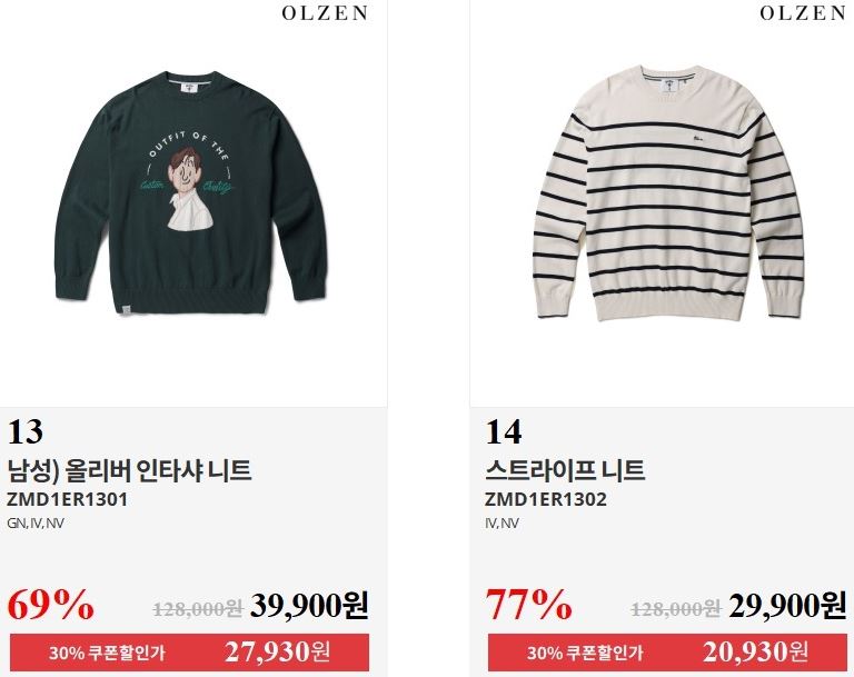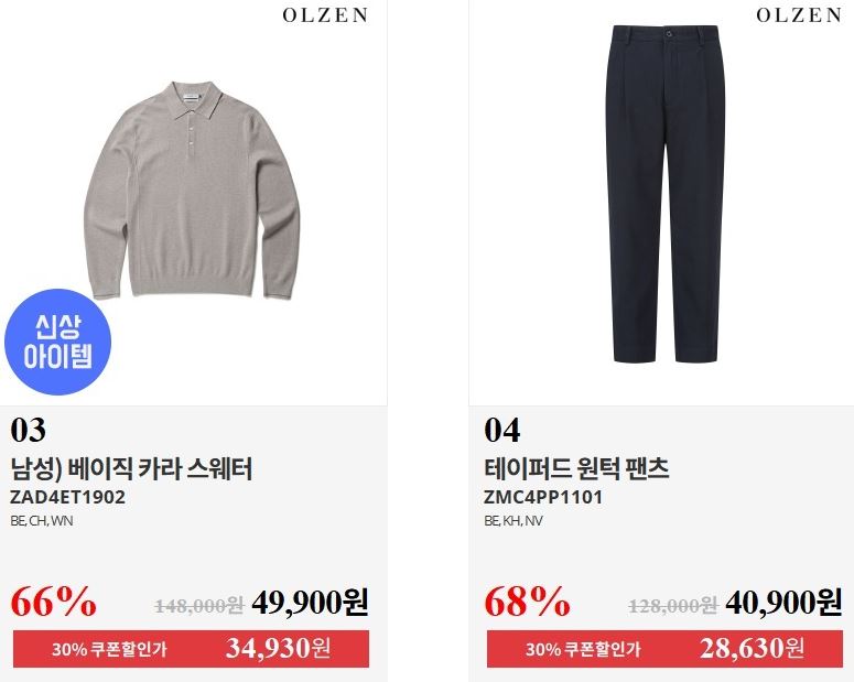 할인 품목 : 스웨터, 팬츠, 니트 등