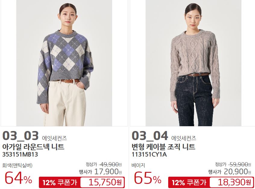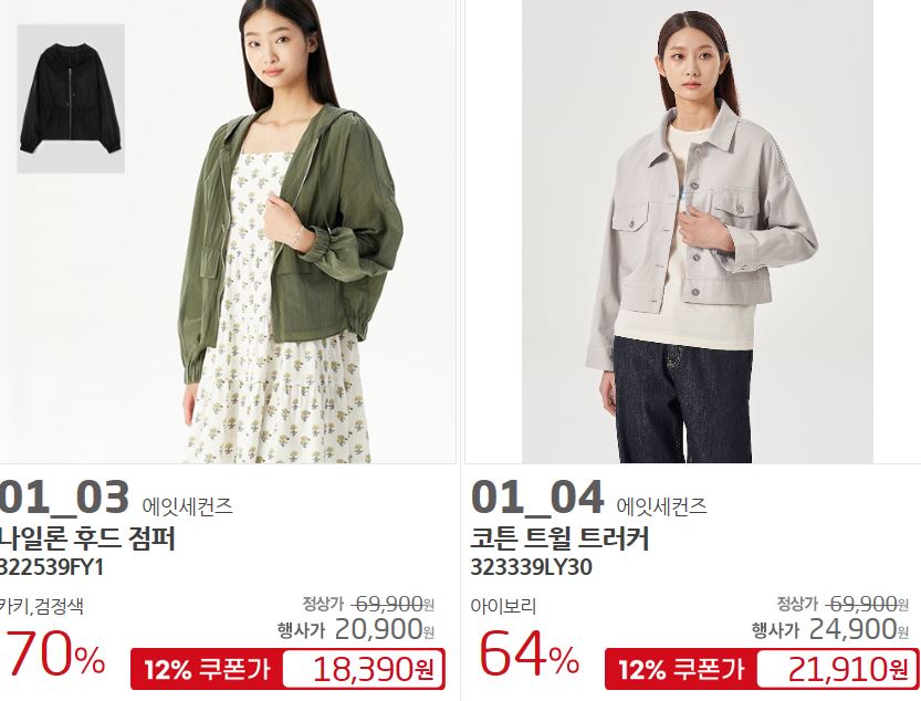에잇세컨즈 다양한 제품을 할인 판매하네요.