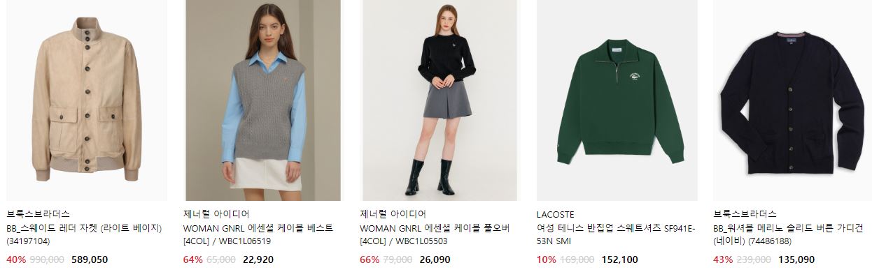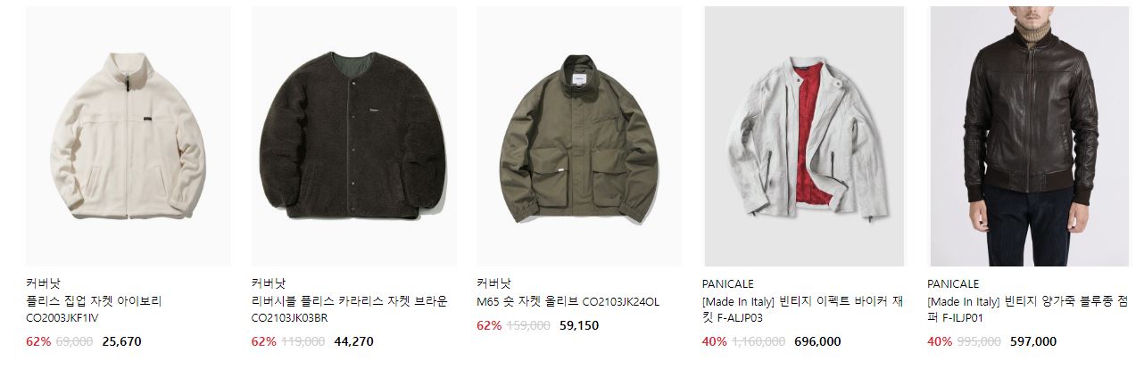 할인 품목 : 자켓, 니트, 셔츠 등