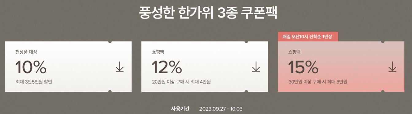 | LF 연휴 세일 15% 쿠폰 + 쇼핑지원금 (0) | 2023.09.30 |