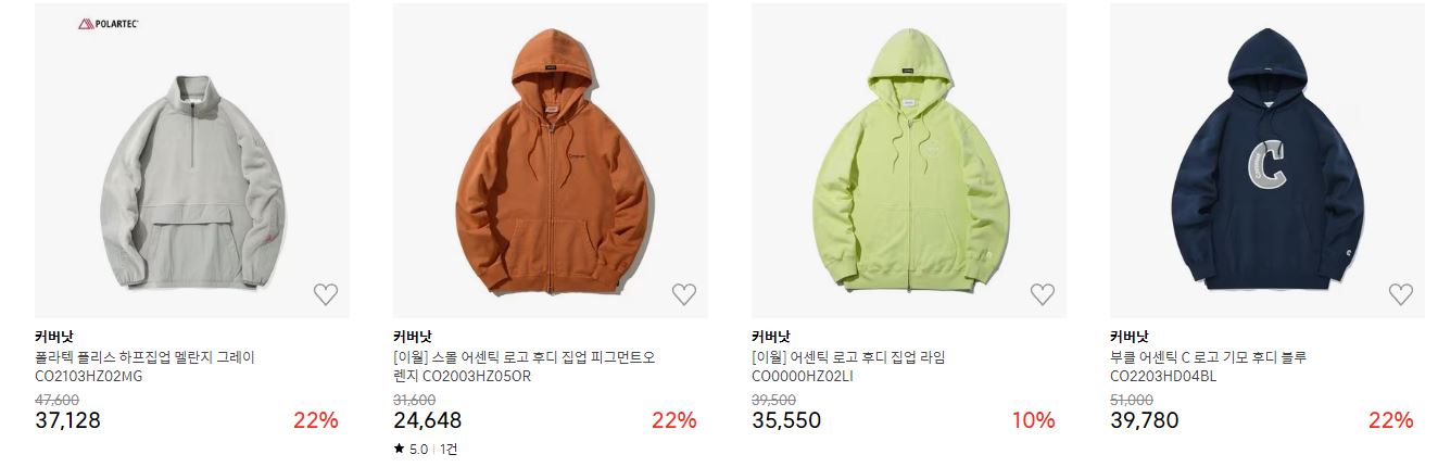 할인 품목 : 니트, 후드티, 자켓 등
