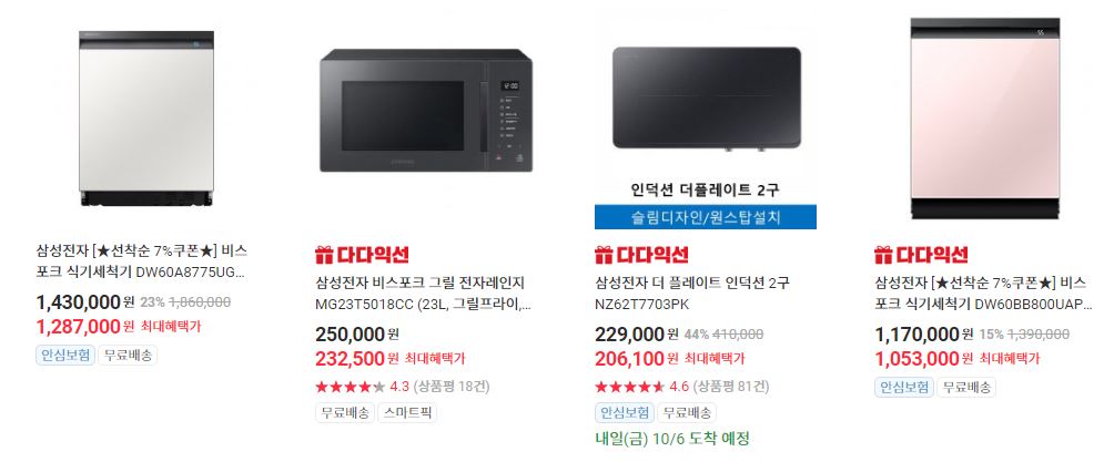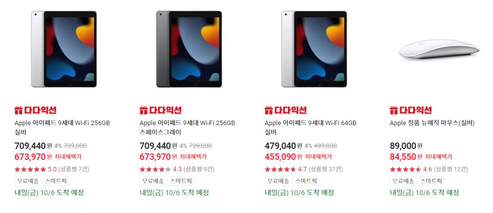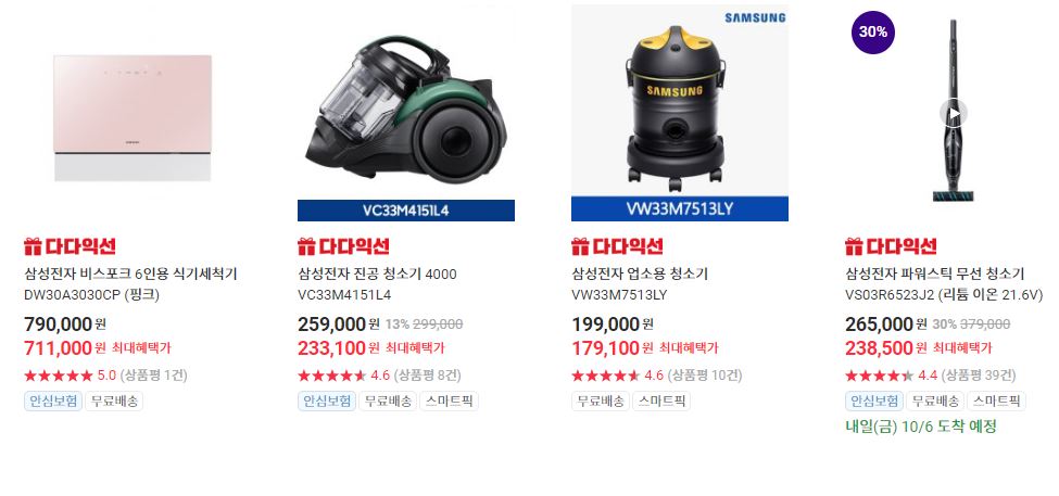 할인 품목 : 태블릿PC, 청소기, 전자레인지 등