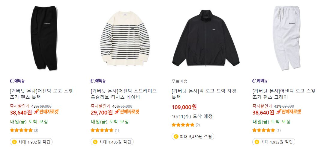 할인 품목 : 운동화, 가방, 티셔츠 등