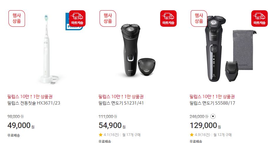 할인 품목 : 가전, 수산물 등