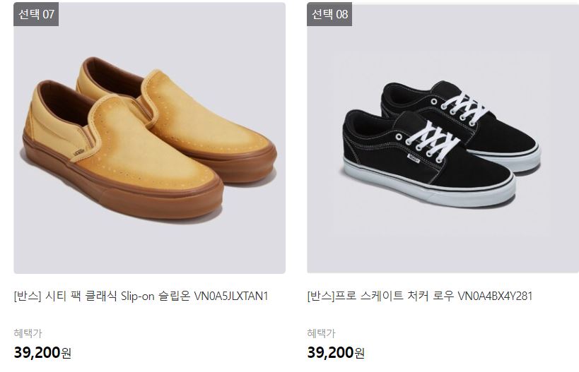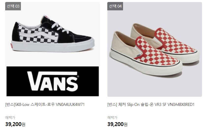 할인 품목 : 어센틱, 슬립온 등