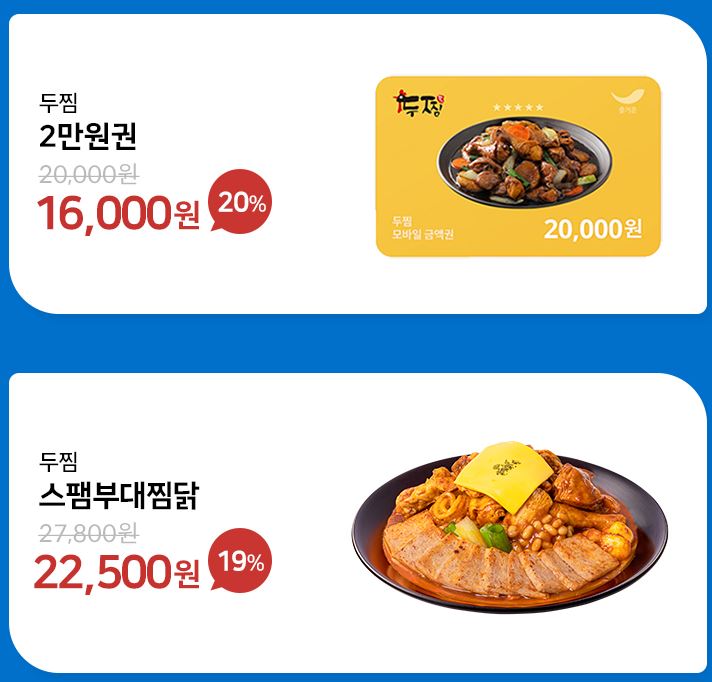 할인 품목 : 2만원권, 스팸부대찜닭