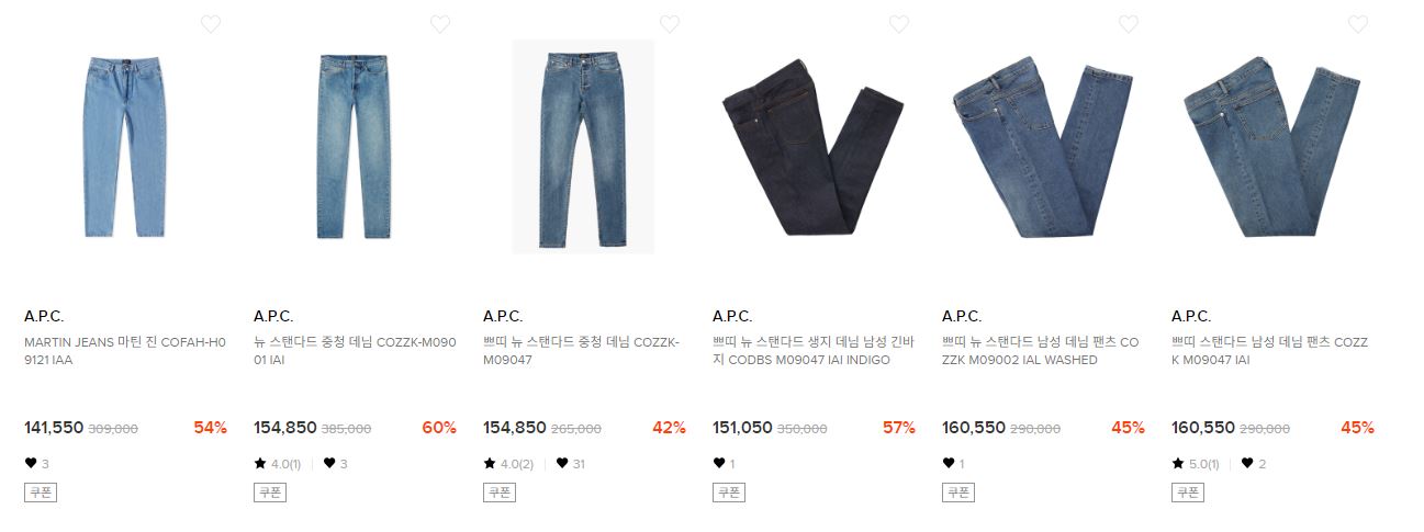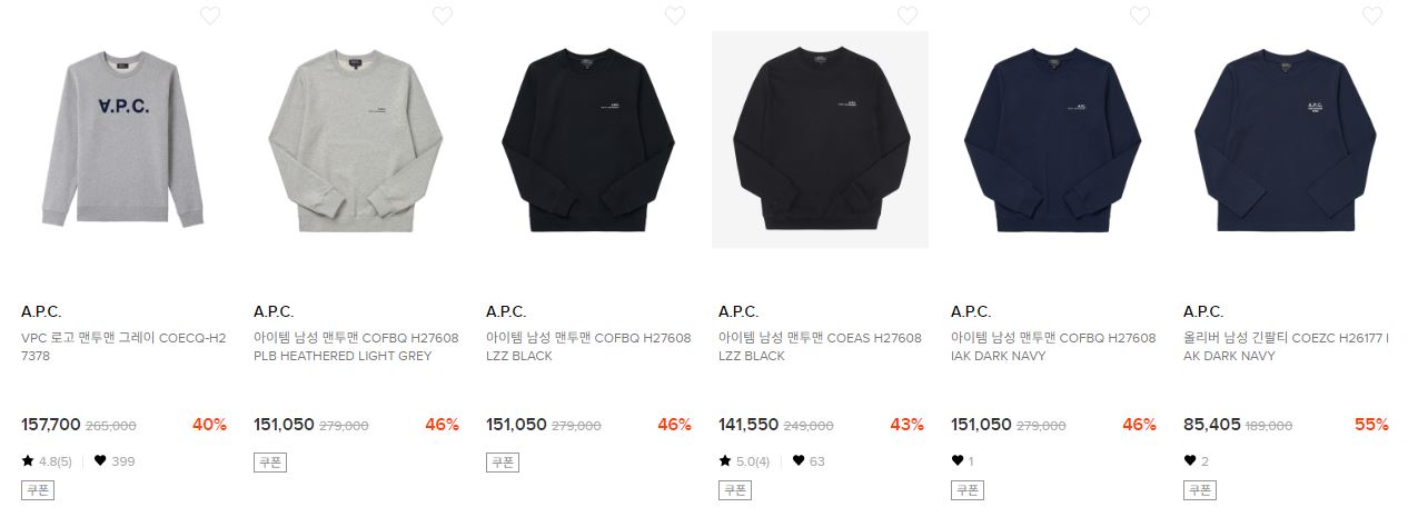 A.P.C. 다양한 제품을 할인 판매하네요.