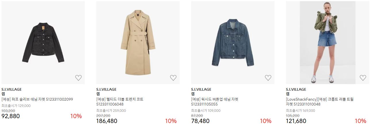 할인 품목 : 티셔츠, 코트, 팬츠 등