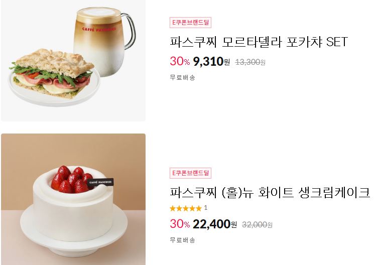 할인 브랜드 : 파스쿠찌, 뚜레쥬르 등