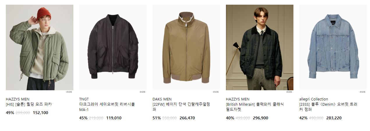 할인 품목 : 점퍼, 자켓, 코트 등