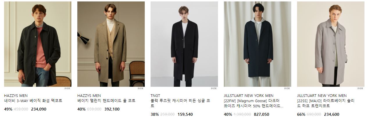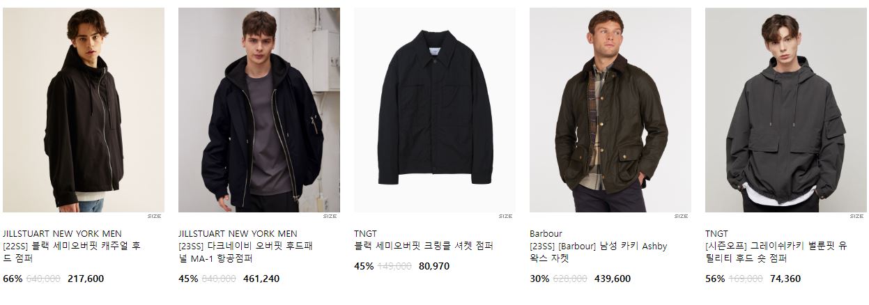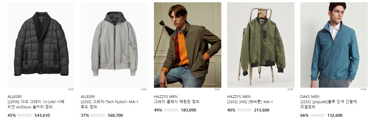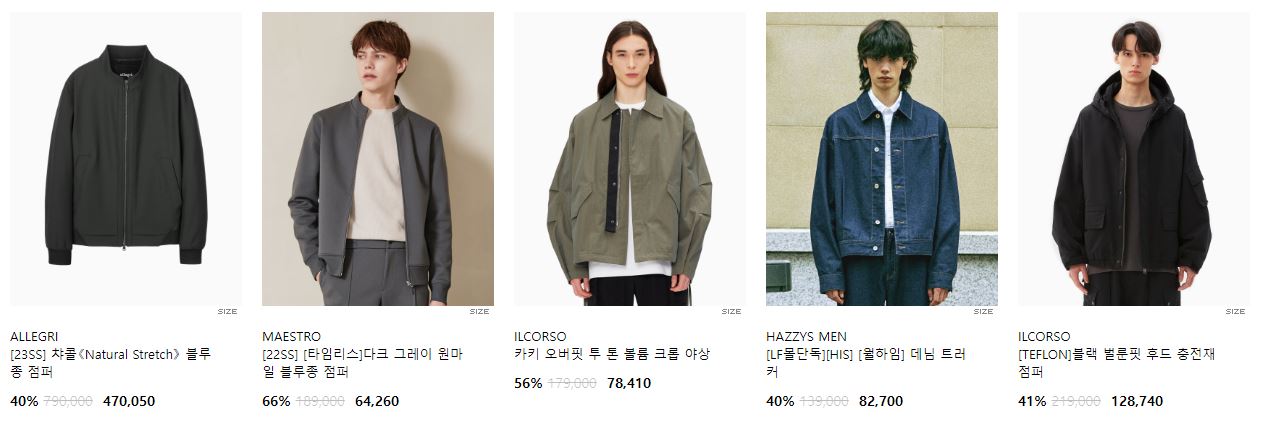할인 품목 : 점퍼, 자켓, 코트 등