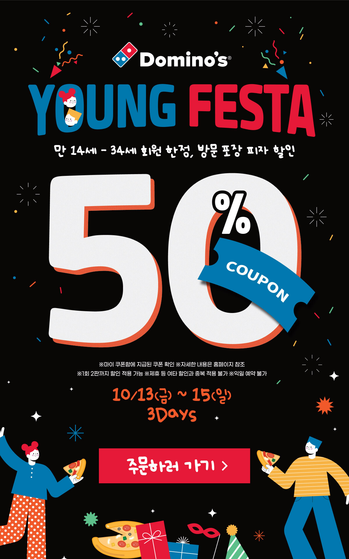 도미노피자 영 페스타 방문포장 50% 할인 정보 [링크]