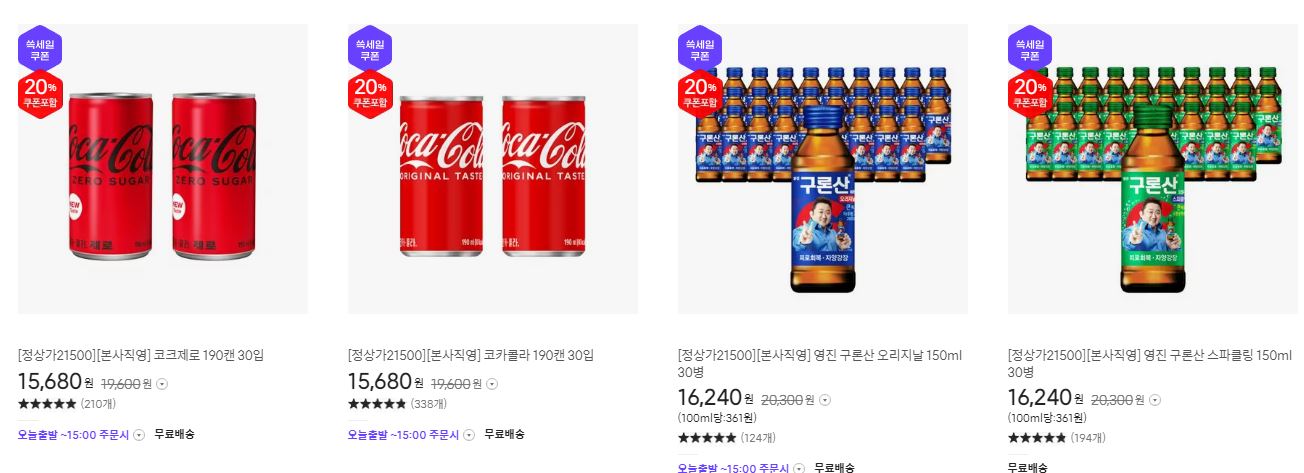 할인 품목 : 코카콜라, 구론산, 갈아만든 배 등