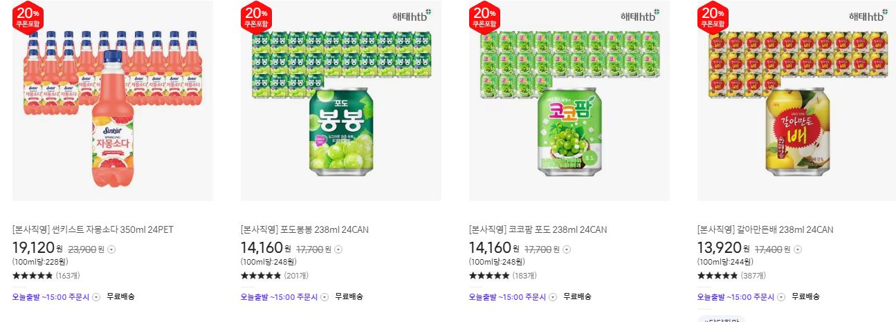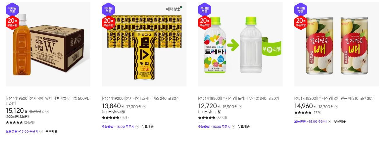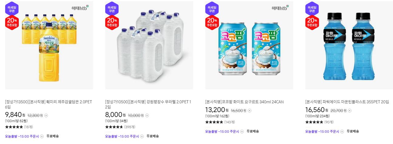 할인 품목 : 코카콜라, 구론산, 갈아만든 배 등