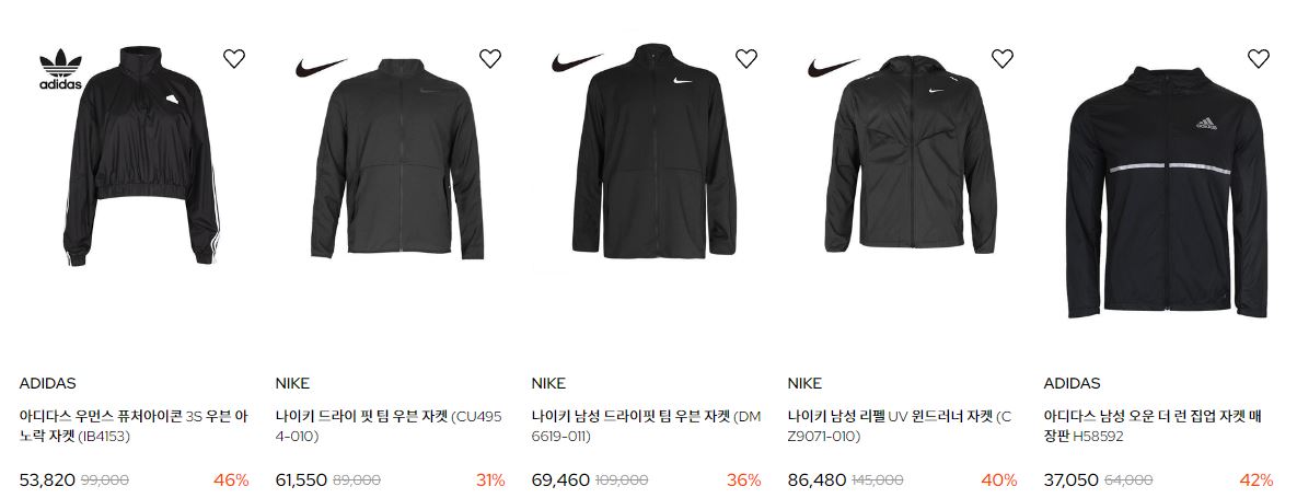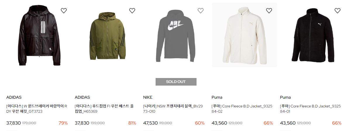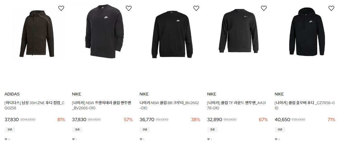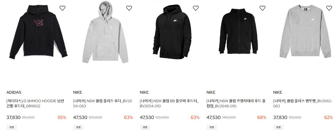 할인 품목 : 후드티, 자켓, 운동화 등