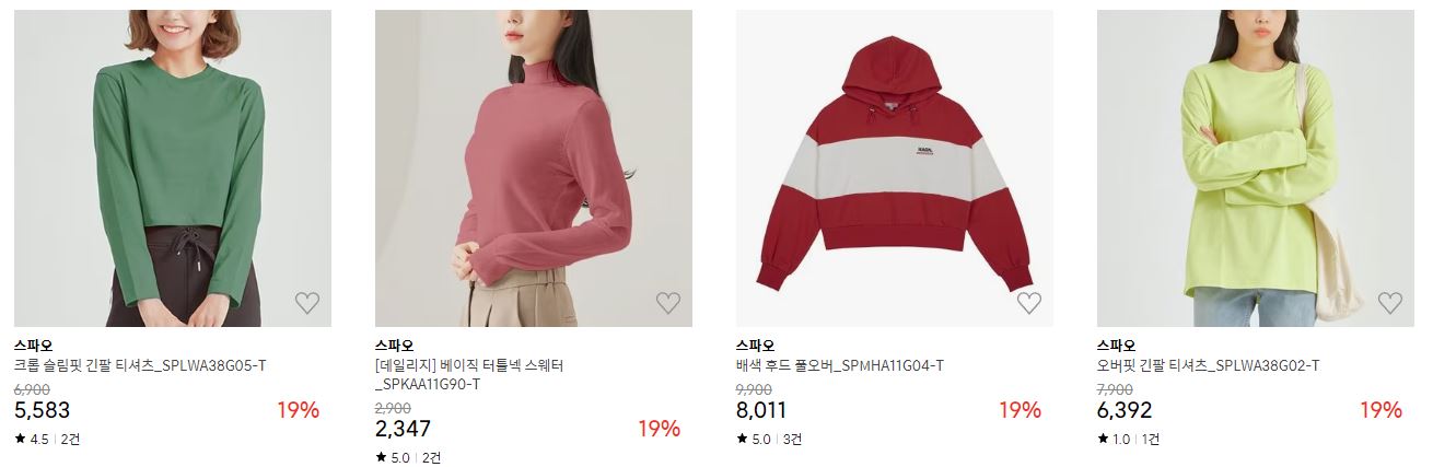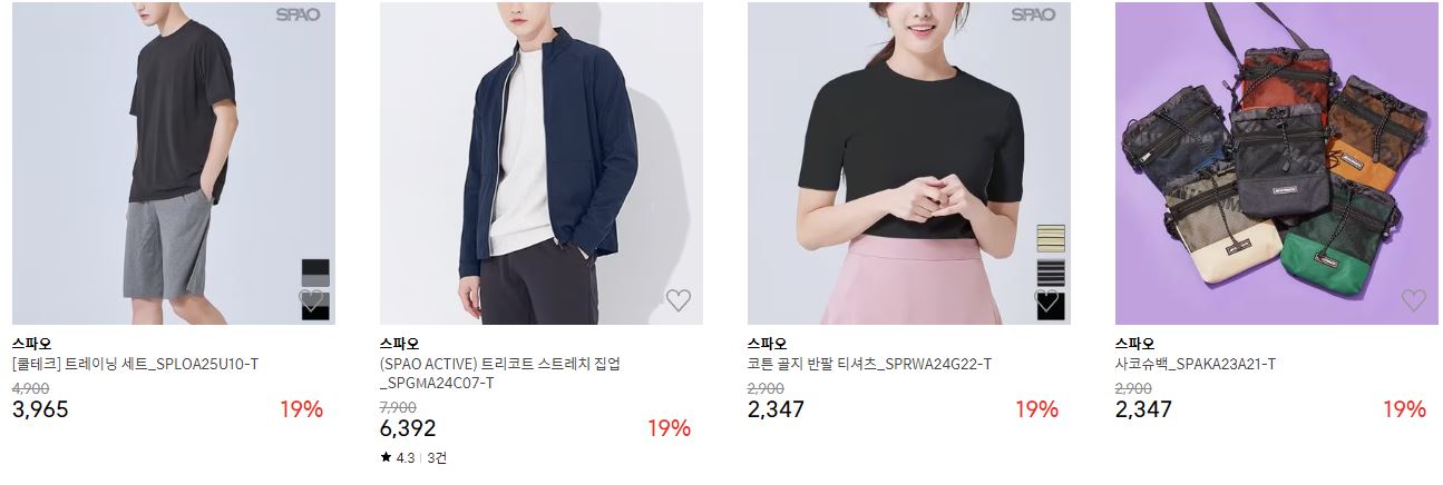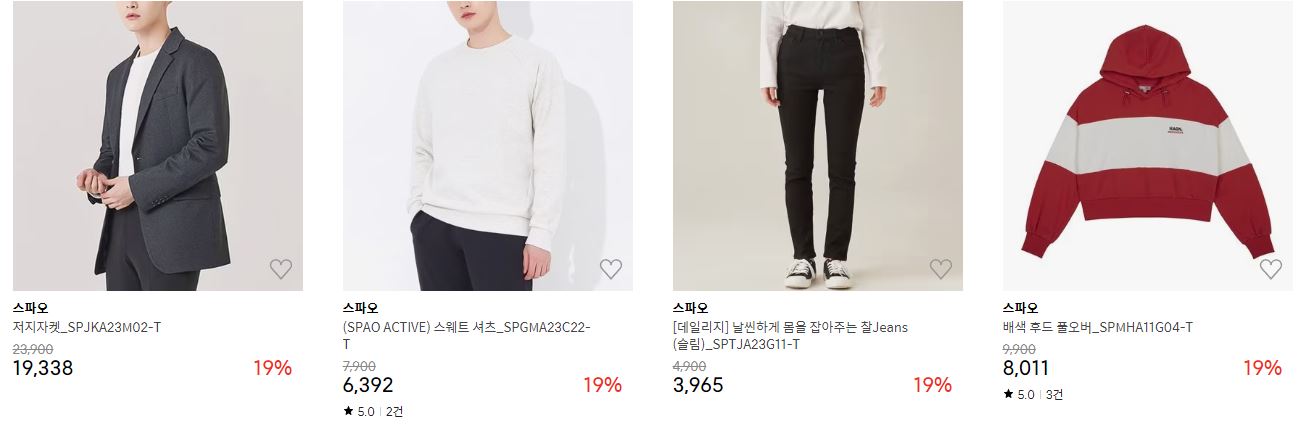 할인 품목 : 티셔츠, 팬츠, 스웨터 등