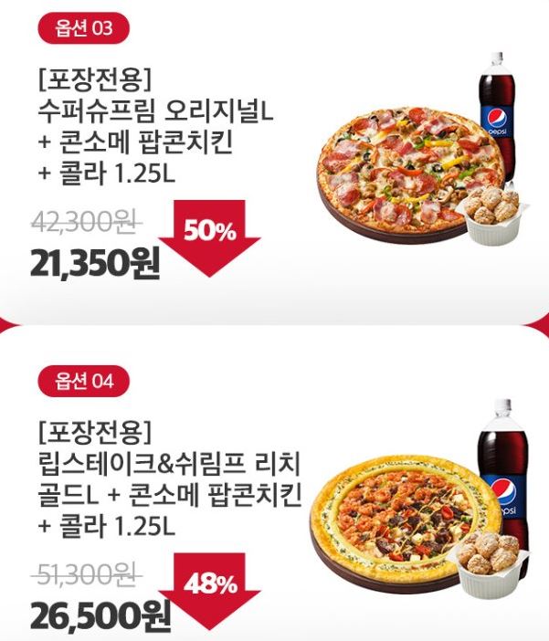 할인 메뉴 : 토핑킹&슈퍼슈프림리치골드 등