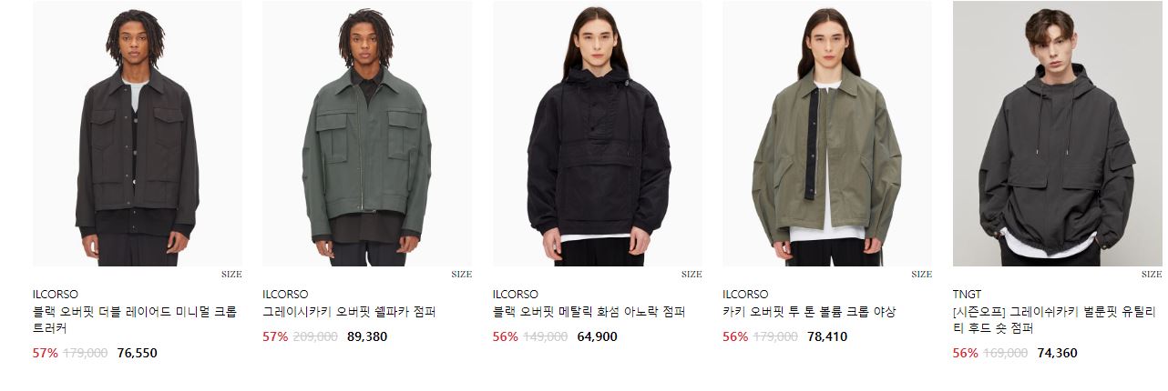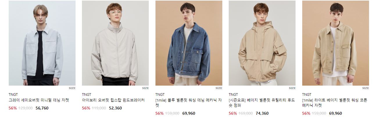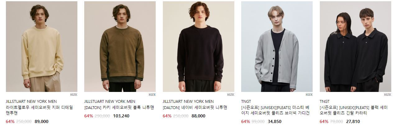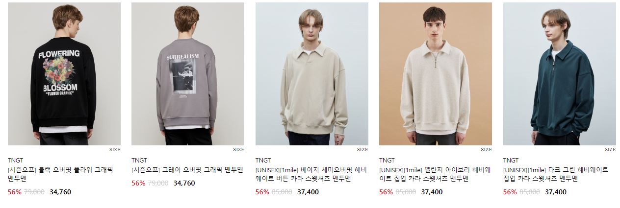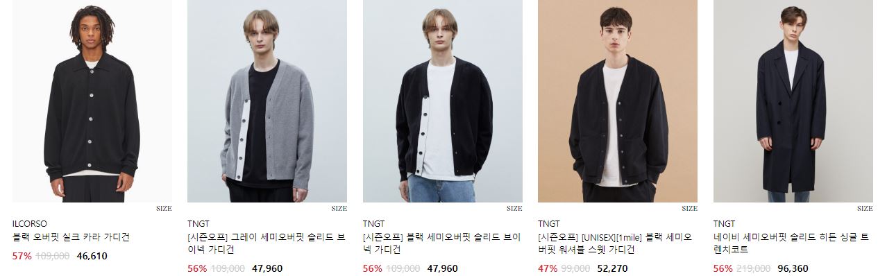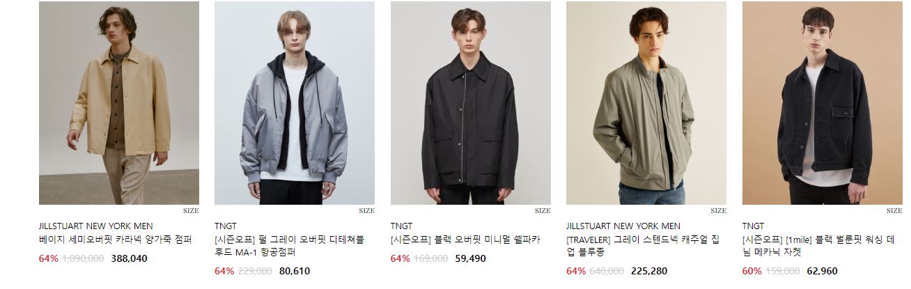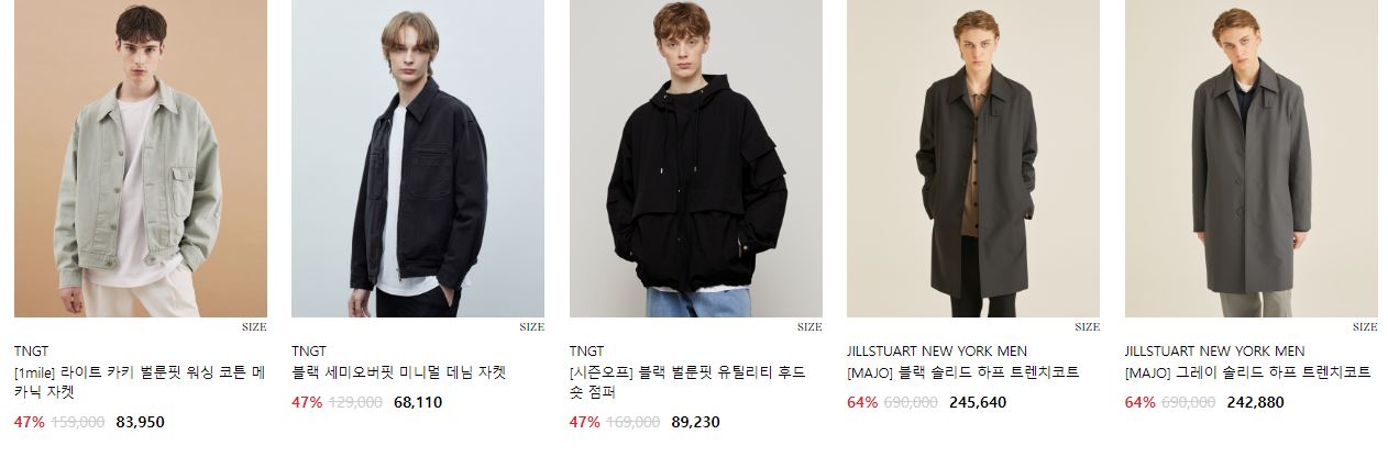 할인 품목 : 코트, 자켓, 맨투맨 등