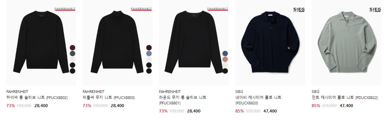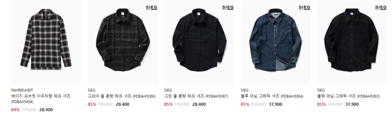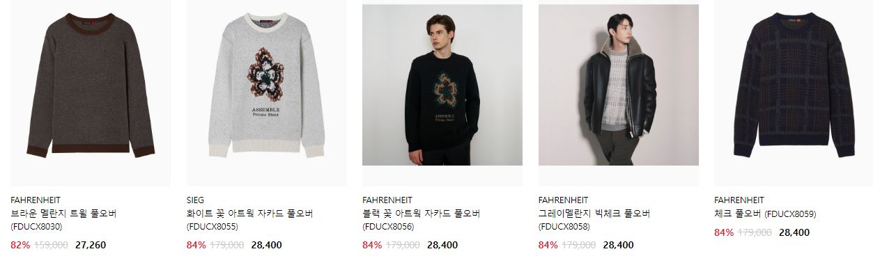 할인 품목 : 코트, 니트, 셔츠 등