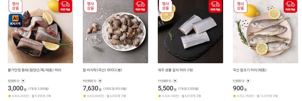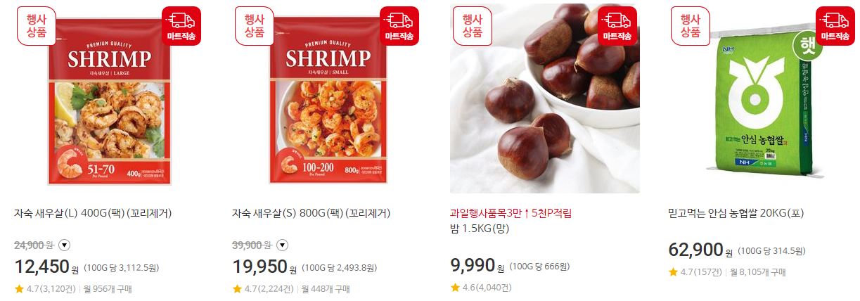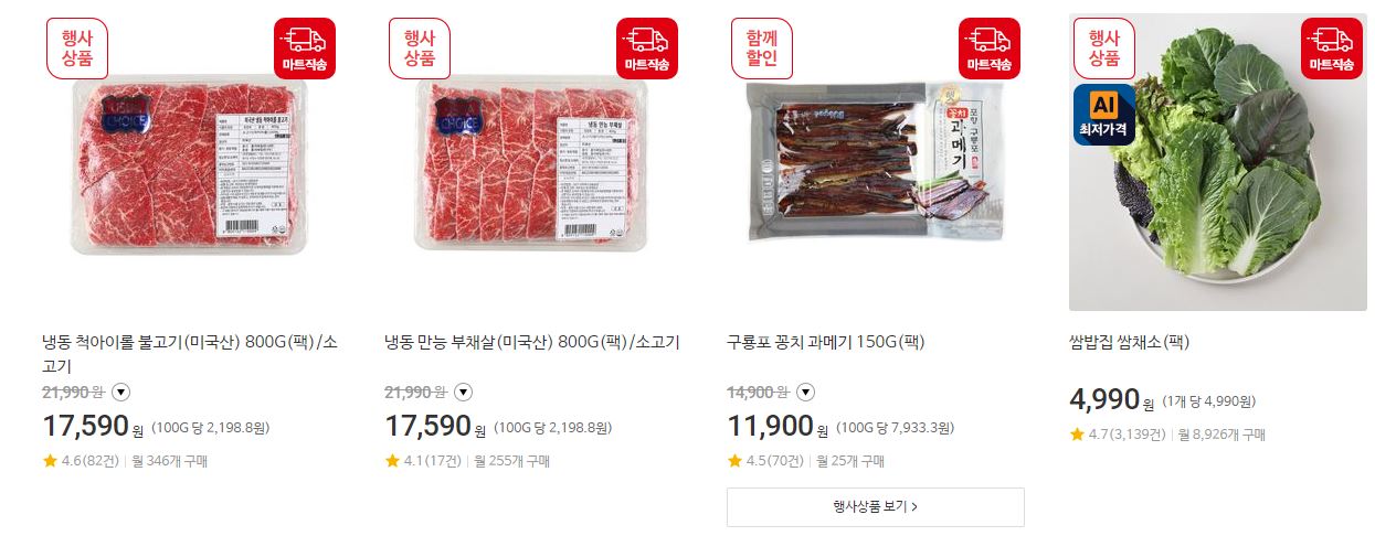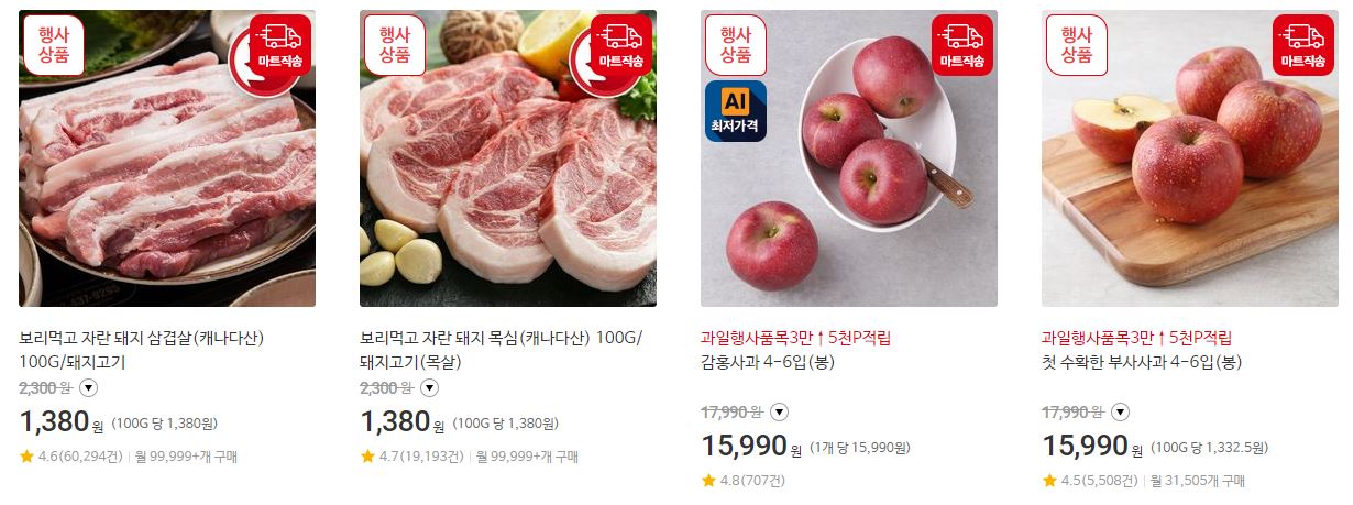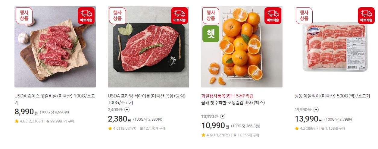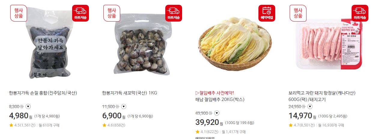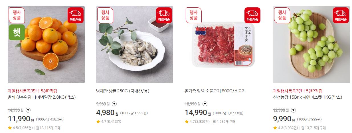 할인 품목 : 김치, 과일, 축산물 등