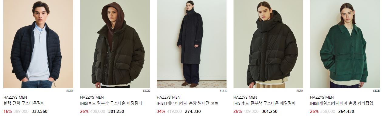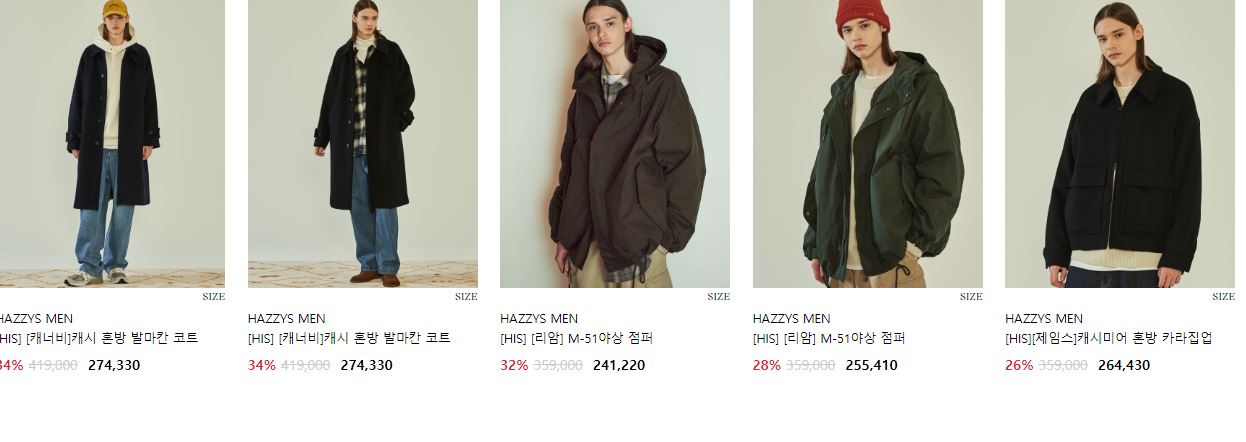 할인 품목 : 코트, 자켓, 점퍼 등