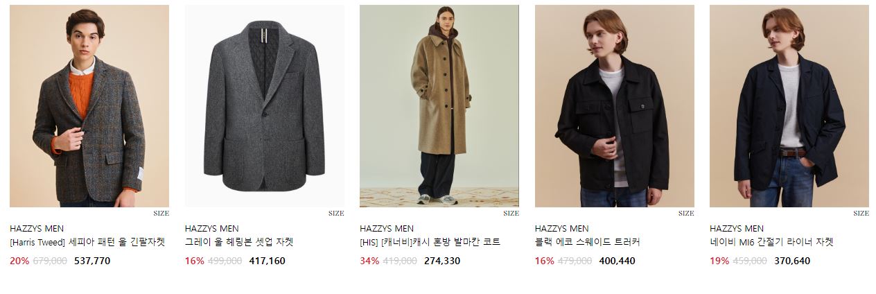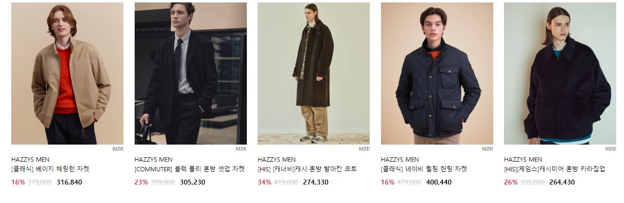 헤지스 맨 다양한 제품을 할인 판매하네요.